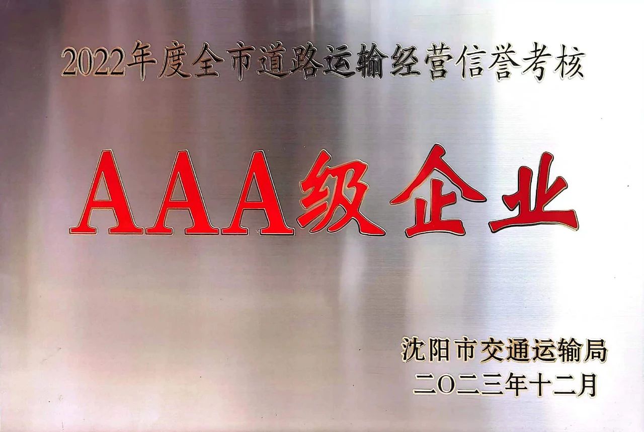 根据沈阳市道路运输信誉考核工作安排及《辽宁省道路运输经营信誉监督考核办法》等相关要求,在全市道路货运企业年度经营信誉考核中,我单位获得“全市道路运输经营信誉考核AAA级企业”称号。